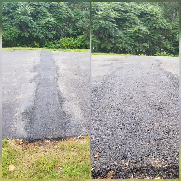This area had been filled with hot tar as water was sitting in the depression. We used the infrared machine to make the crack disappear!